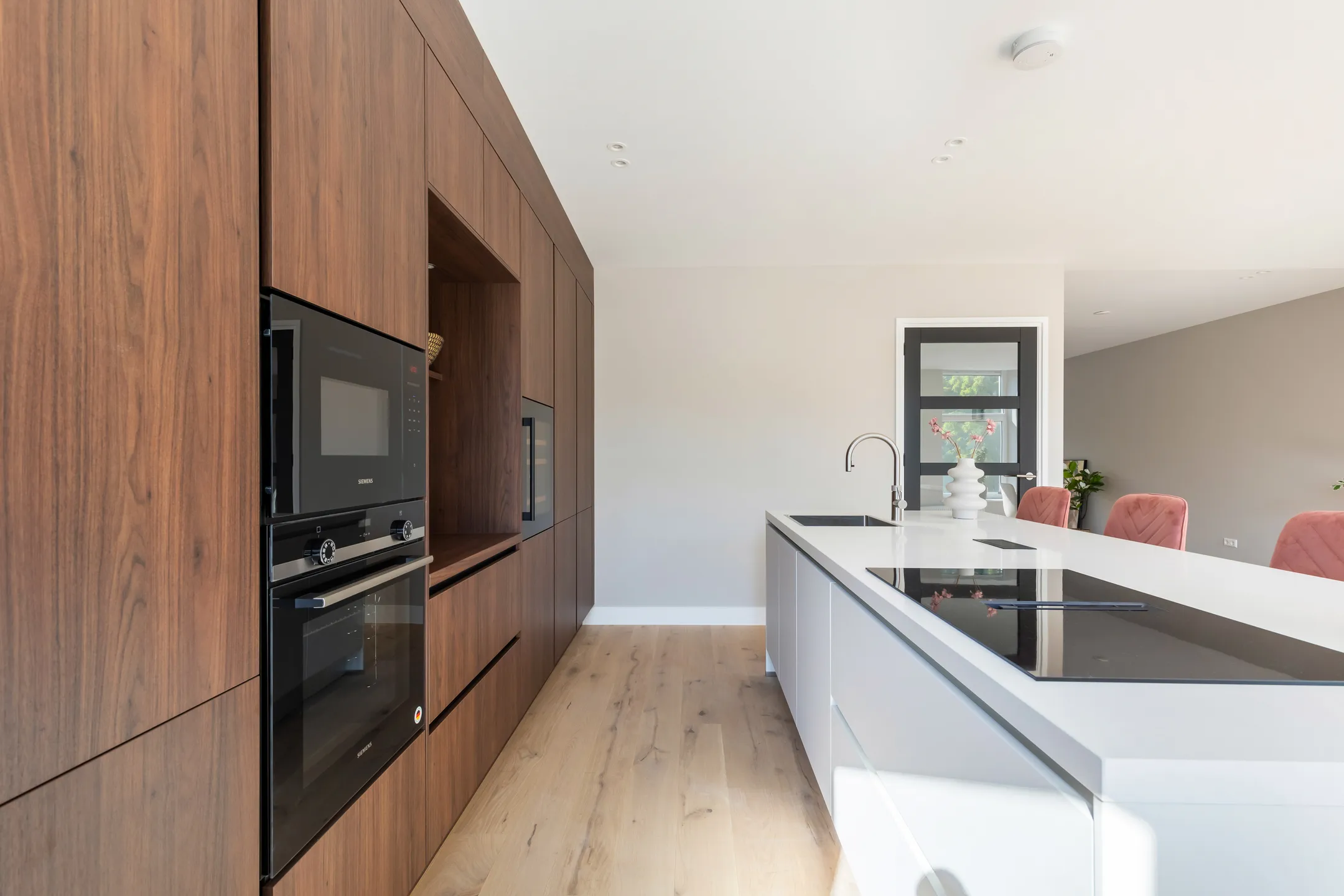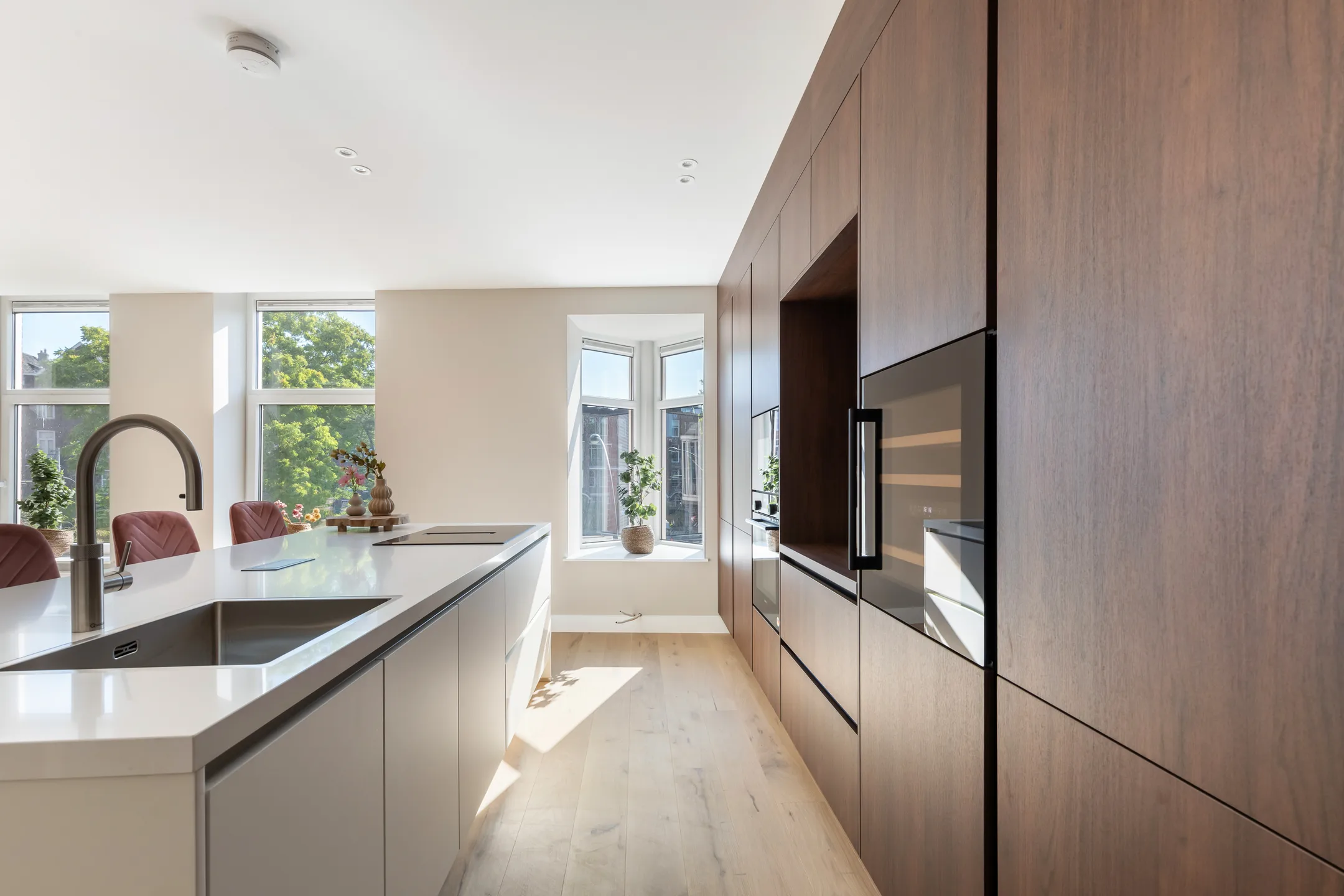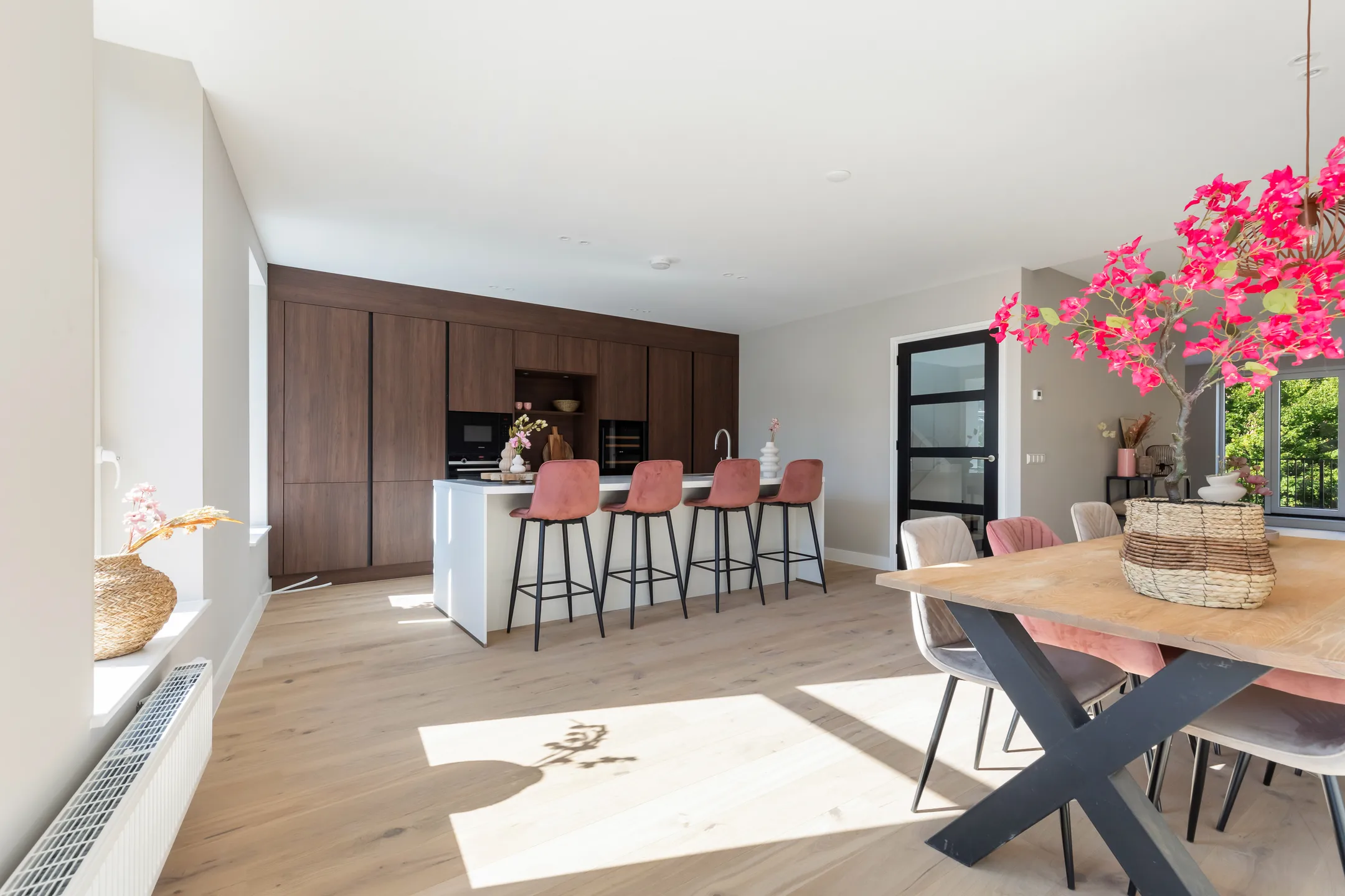 Deze royale woning strekt zich uit over twee verdiepingen en is voorzien van een moderne luxe keuken met kookeiland. De keuken is het kloppend hart van de woning, uitgerust met hoogwaardige inbouwapparatuur. De open indeling naar de eetkamer maakt het een ideale plek om te koken en gasten te ontvangen. Grenzend aan de woonkamer vind je een heerlijk dakterras. Ook hebben wij twee luxe badkamers gerealiseerd.
