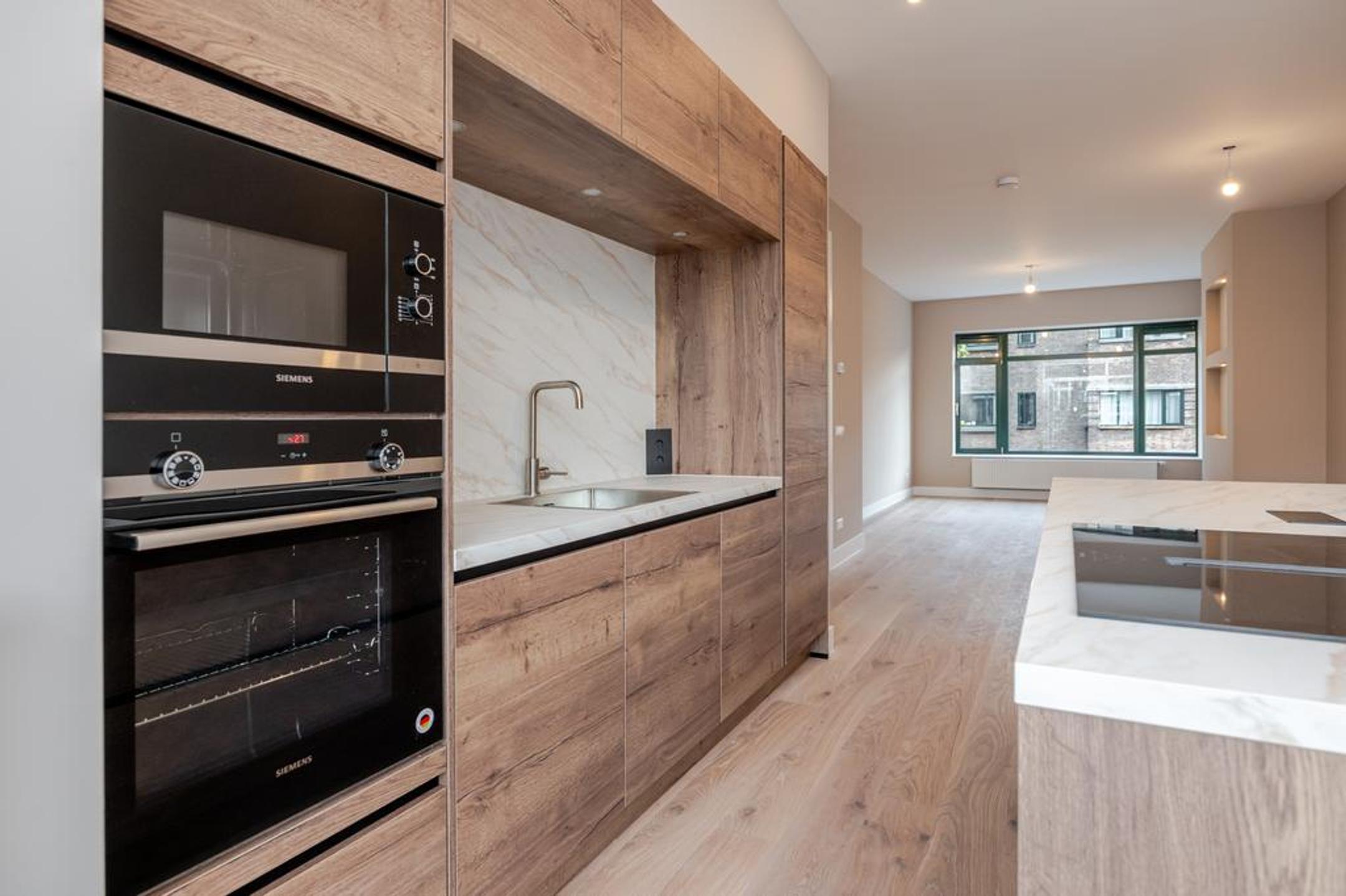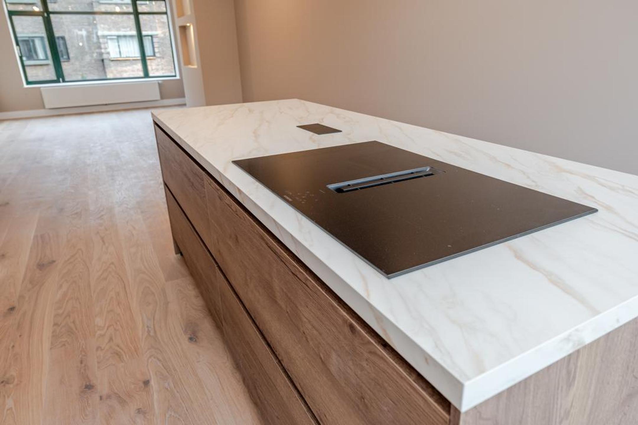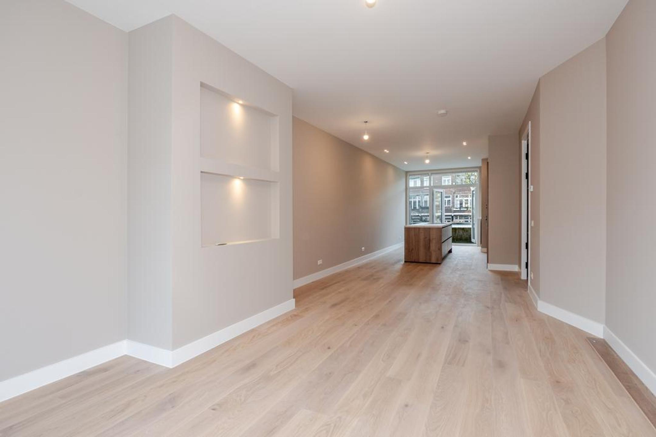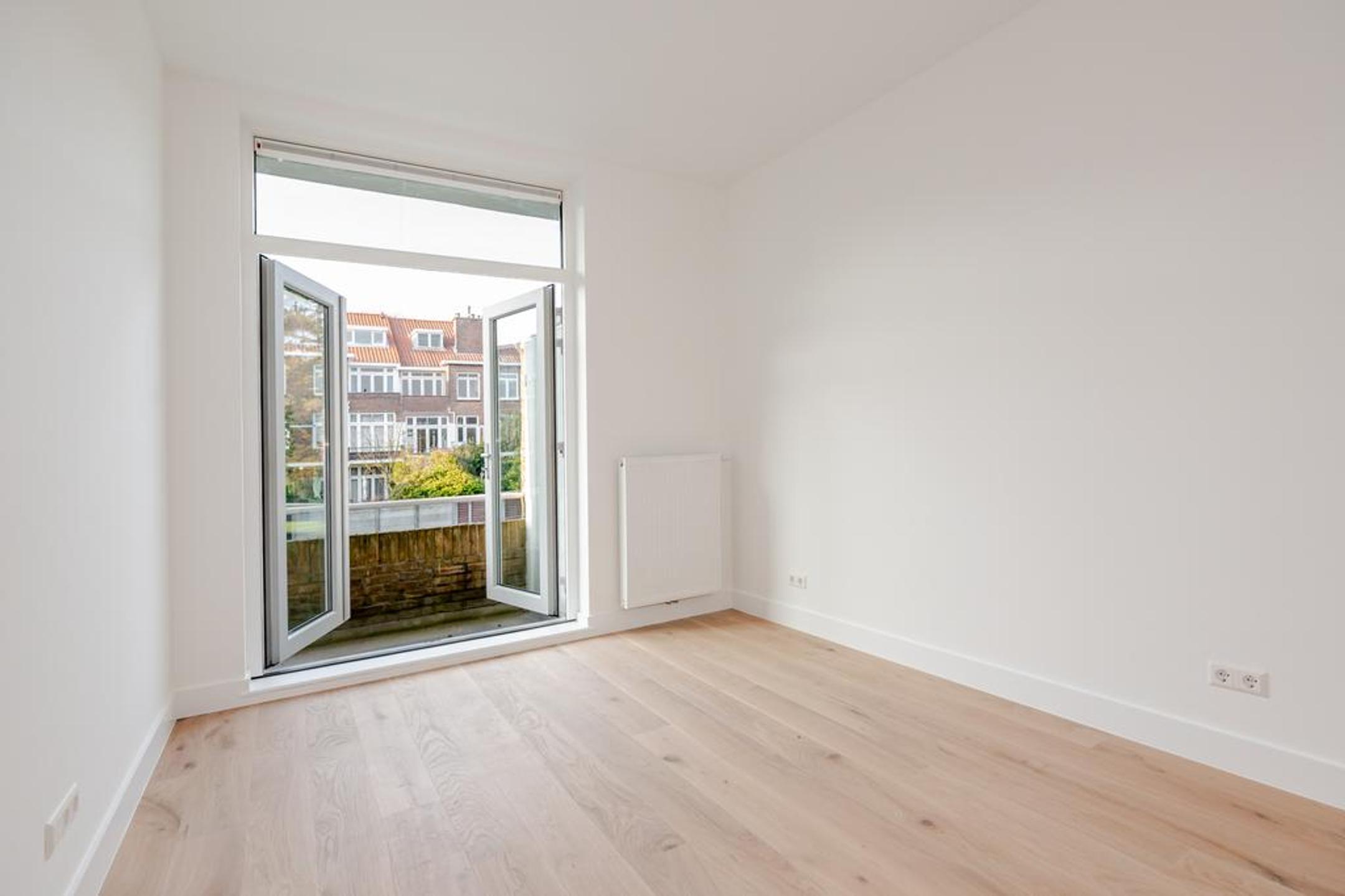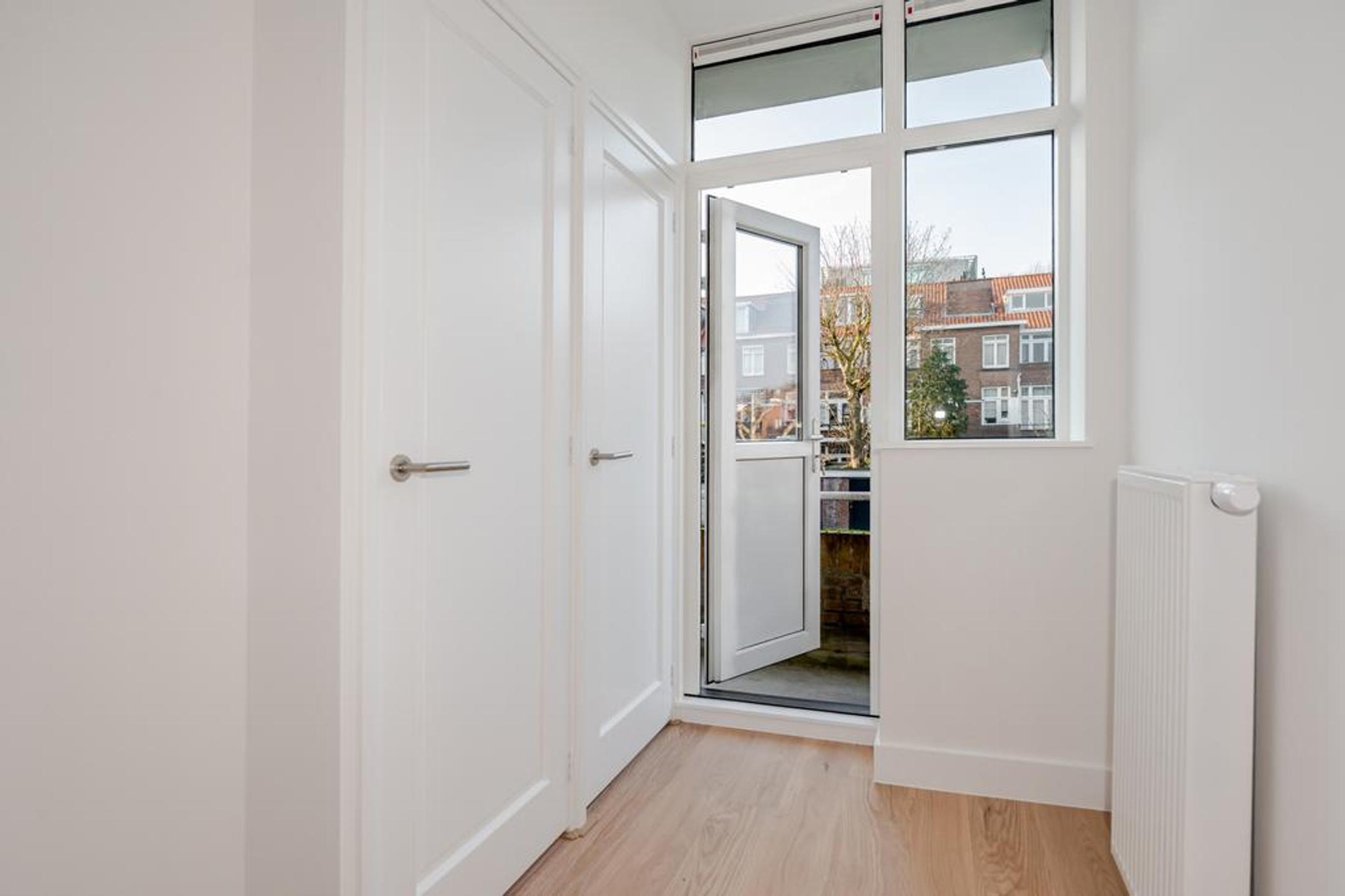 Wij hebben dit royale (ca. 100 m2) volledig high end en met smaak gerenoveerde 4-kamer appartement opgeleverd. Overloop, entree appartement, mooie brede hal met toegang tot alle vertrekken, luxe wc met fonteintje, luxe badkamer met inloopdouche, dubbele wastafel met meubel en designradiator, zonnige woonkamer met openslaande deuren naar het op de ochtendzon gelegen balkon en riante luxe open eetkeuken met eiland en alle inbouwapparatuur.